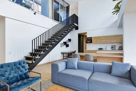 Este increible 3 niveles penthouse es perfecto para parejas jóvenes, grupos o incluso familias. Su inmejorable ubicación lo convierte en la primera opción si desea estar cerca de los mejores restaurantes, cafeterías y bares de la ciudad, pero lo suficientemente lejos como para disfrutar de la tranquilidad. El tema del penthouse presenta amplias plantas, árboles y jardines verticales tanto por dentro como por fuera. Sentirás que eres uno con la naturaleza.